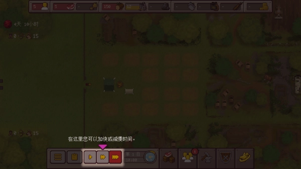 4在剧情片段结束后,玩家可以选择跳过这部分内容,直接进入正式的游戏环节。此时游戏界面的上方会清晰展示出当前拥有的资源数量以及人口规模。