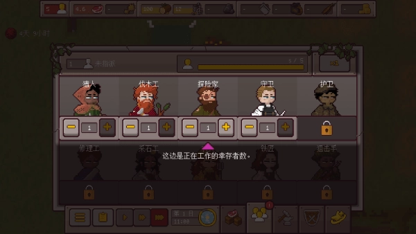 从10多个工作岗位中为每位幸存者选择合适的岗位,然后看着他们开始工作!