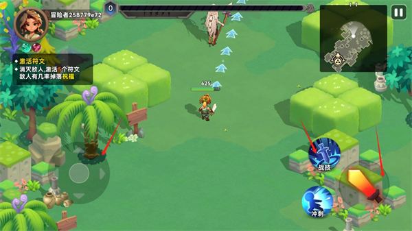 3、滑动左边的轮盘到敌人附近,点击右边的攻击和技能,干就完事了。