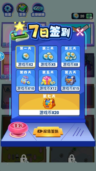2.点击画面左上角的签到能够获取额外的游戏币。