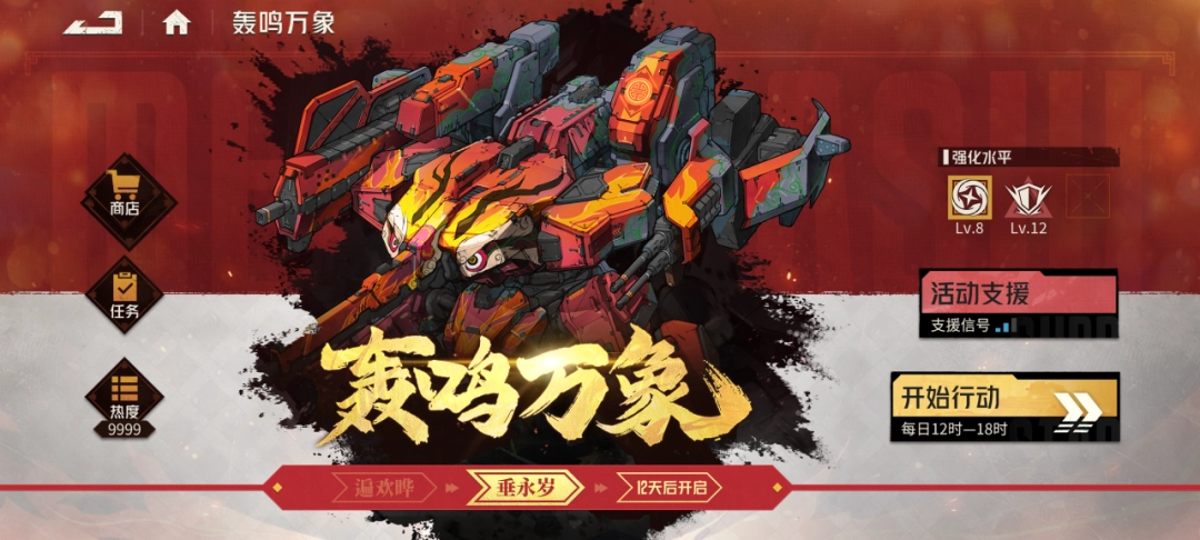 指挥官可以选择直接开始行动或活动支援协助其他玩家来参与此活动,活动目标是拿到更多积分,不同档位积分可获得不同数量的「醒狮红包」奖励,积分和相应奖励将在每日5:00重置;