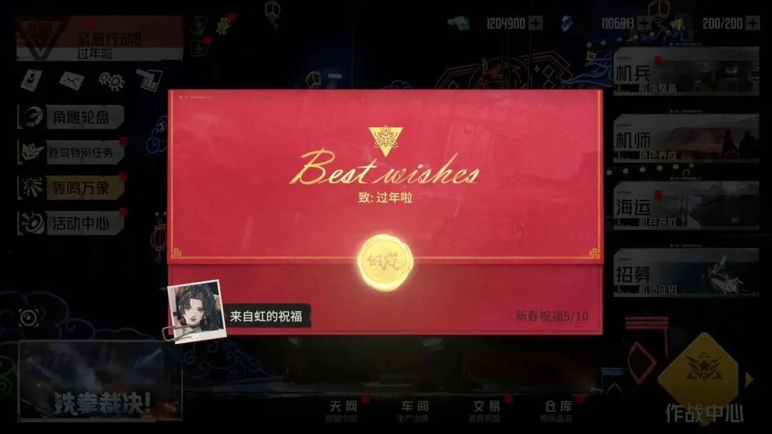 活动期间,指挥官每日可收到来自机师的新春祝福,并获赠88-128区间的随机纯晶奖励,共计十封信件。考验手气的时候到啦!