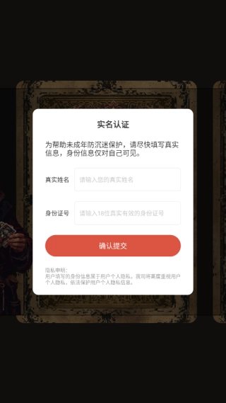 1进入游戏后,需先完成实名认证,方可开展后续操作。