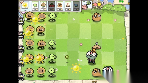 5、游戏采用Q萌的幼儿园风格画风,植物与僵尸的形象均经过萌化处理,僵尸被击倒后还会出现掉眼泪的动画效果。
