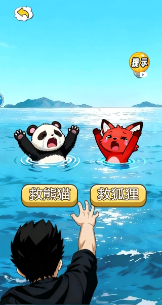 2、以动物报恩模式为例,面对熊猫与狐狸落水的场景,需跳出二选一思维,寻找同时救援两者的方法。