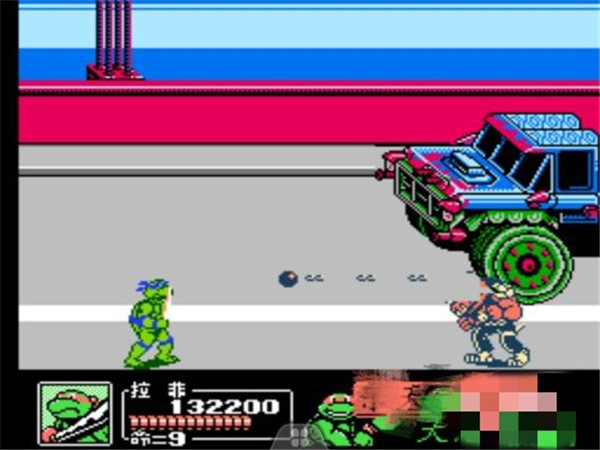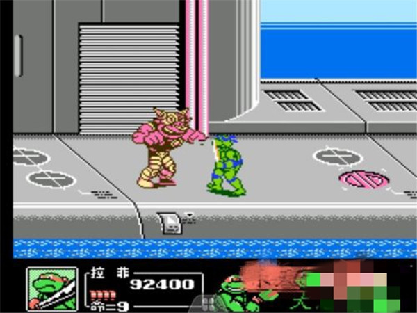 boss的攻击伤害很高,在它冲撞的时候别用飞踢,之后用任意一只忍者龟的技能去攻击它就行,不过通常还是得消耗一条生命。