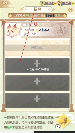 1、灵兽碎片是给灵兽升级中必要的东西,想要获取,首先先去招募一只灵兽。