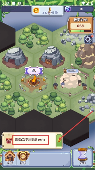 1、界面会显示【完成1次专注训练-0/1】的任务,点击相应引导就能进入专注训练环节,在推动任务进度的同时还能助力城市发展。