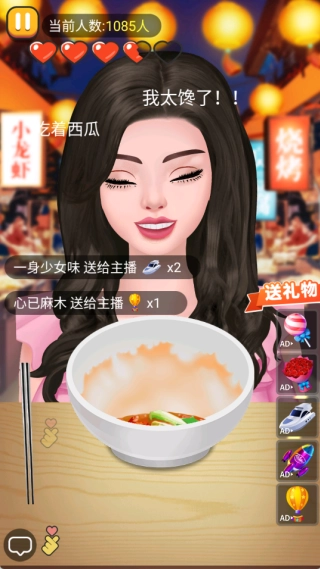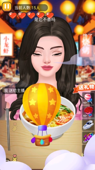 1、玩家要根据游戏的指示来品尝食物,熟练使用工具来吃饭,让直播间的人气快速提升。