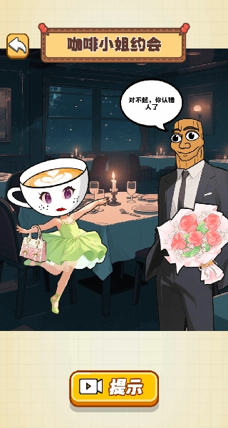 3、遭遇难题时点击下方提示按钮获取线索,借助无厘头指引打破思维僵局,找到解谜关键思路。