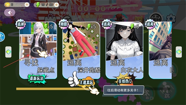 1、进入关卡前会显示准备倒计时,此阶段可通过左下方轮盘控制角色移动,提前熟悉当前场景的布局,为后续躲藏或抓捕做铺垫。
