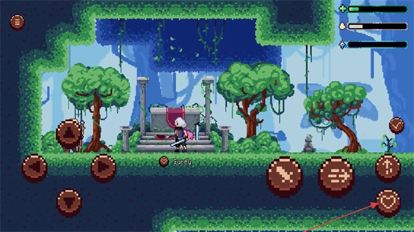 采用经典像素画风打造游戏画面,角色与场景设计充满复古街机质感,通过细节让勇者世界更生动,契合动作闯关的主题氛围。