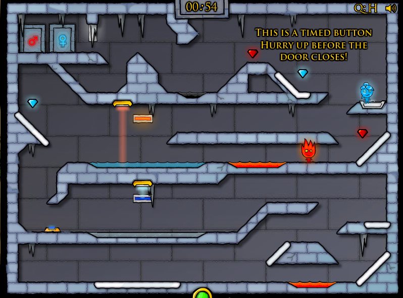 1、游戏角色需具备足够的灵活性,玩家可操控火焰人和冰人进行通关,过程中要持续躲避所有陷阱。