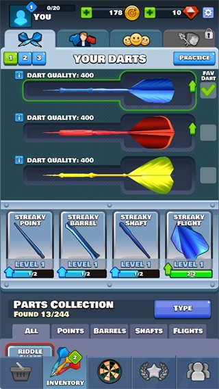 复杂的升级系统:找到各种新道具以加强您的飞镖