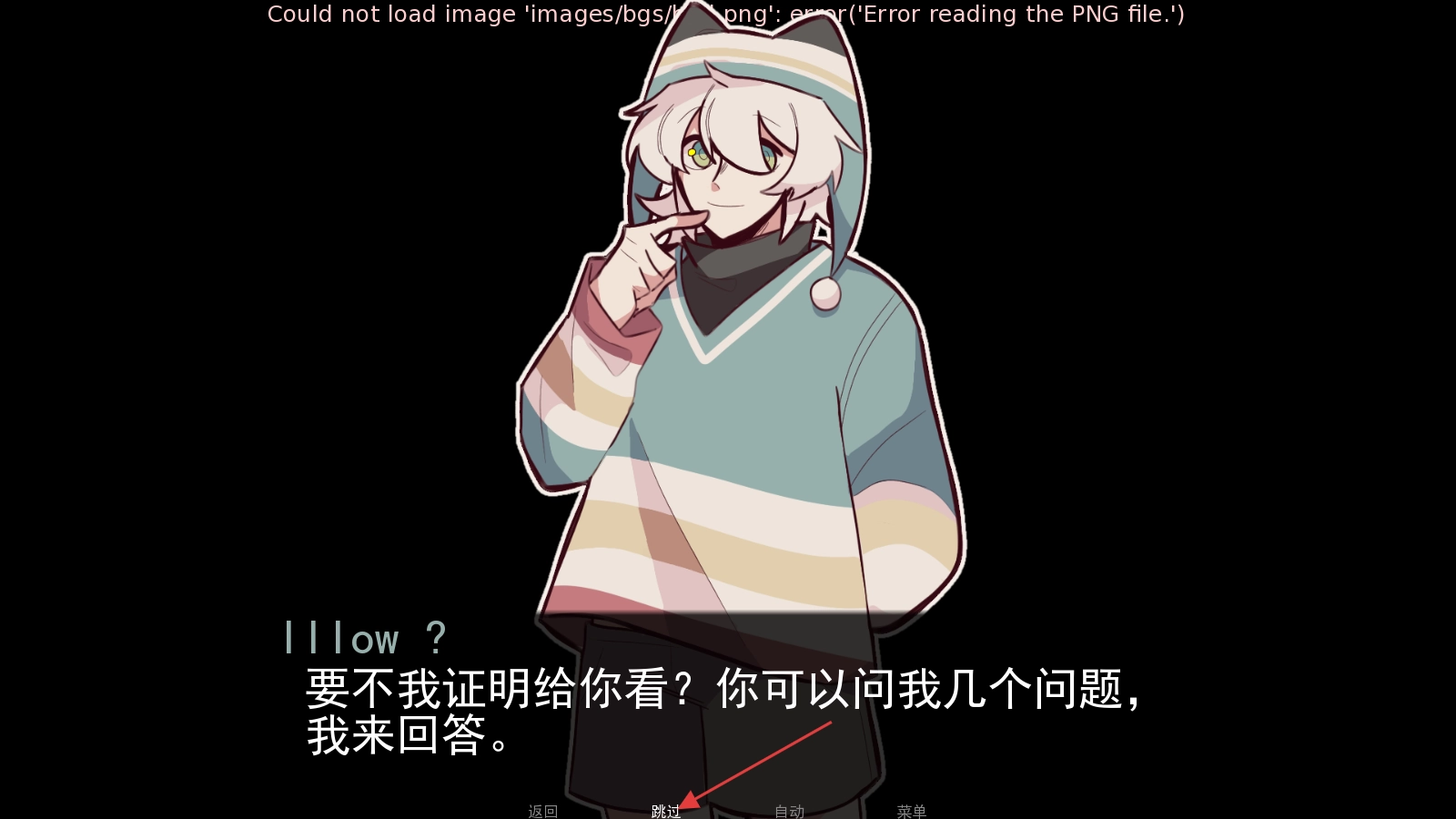 1.在该对话界面查看角色提出的互动内容,点击界面下方的跳过按钮,可快速略过当前对话内容以推进游戏流程。