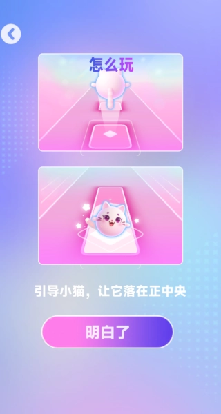 1、进入游戏后跟随指导熟悉操作逻辑,核心目标是引导小猫精准落在音符中央,触发完美判定。