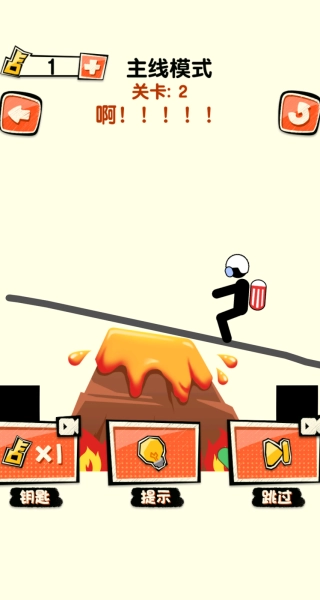 4、在关卡2遭遇岩浆类危险时,留意角色的移动路线,提前在岩浆飞溅的区域绘制遮挡线条,也可以借助提示来梳理画线的逻辑。