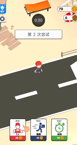 3、升级后开启新轮搬运,借助工人协作提升效率,确保在规定时间内集齐所有物品并安全运输。