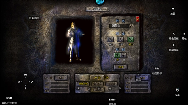 2、我们初次进入游戏时,需要完成角色起名、选择角色等一系列操作。
