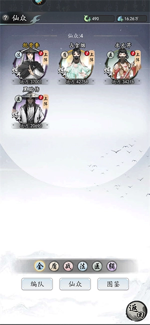 6、主角培养:灵药,八卦,心法,神念,灵器,仙甲,功法、身法、神通升级全部砸给主角。红装备一星,升二星,升三星的装备全戴在主角身上,最大化提升主角。主角为火法的技能带暗香功法组合,冰法技能带七曜功法组合。主角为战士的技能带养心功法组合。灵技是普攻,绝技需要消耗怒气才施放,战斗中仙众血条下面那条不断加减的黄条就是怒气,怒气下的字是各种 buff 和 debuff 。主角有连击才能打出高伤害,身法带红色或者橙色横扫,神通带红色或者橙色虚相诀。主角灵器带伏阳幡(加攻击),沧天刀(破防),斩仙刃(破盾)(火法或者战士可戴炎火扇),有红灵器优先带红灵器,没有的带橙色灵器。仙众站位,主角有天下无双气运的站二号位(前排右一),盾辅站一号位(前排左一)。没有天下无双气运的,主角放后排左一,盾辅放一号二号位。天下武功唯快不破,氪佬请氨加速度的灵丹,灵膳,天材地宝提升速度。对战第一回合带天下无双气运满怒直接放绝技秒杀对面四个挂件,爽歪歪。