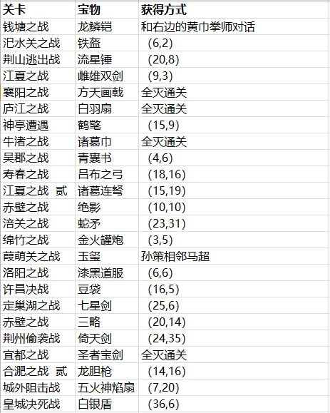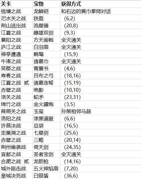 小编这次整理了3个传记的宝物获取途径,方便各位主公届时顺利拿下这些宝物。