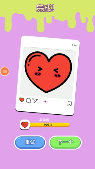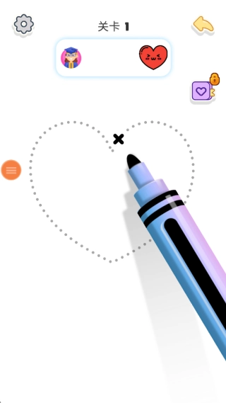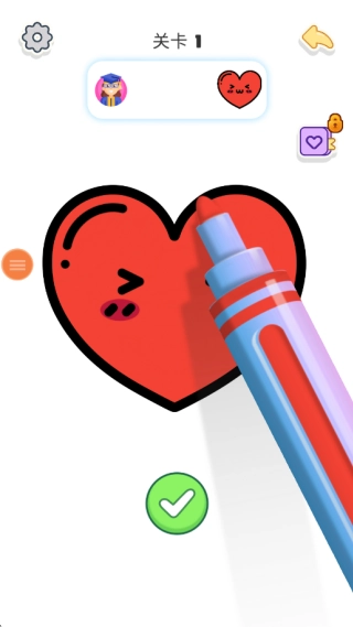 2.如下图所示,在第一个关卡中玩家需要根据示例图绘制一颗红心。