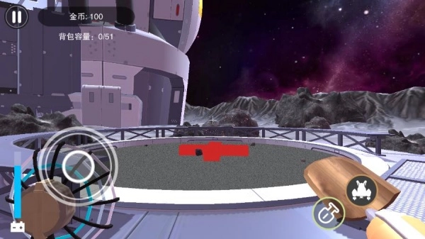 2、操控角色在天体表面移动,瞄准普通石头等基础矿物进行挖掘,将收集到的资源存入背包,积累初始财富。