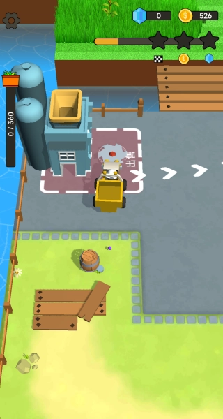 进入场景后,根据手指指示的方向来操控割草车行进,以此开启后续的割草任务。