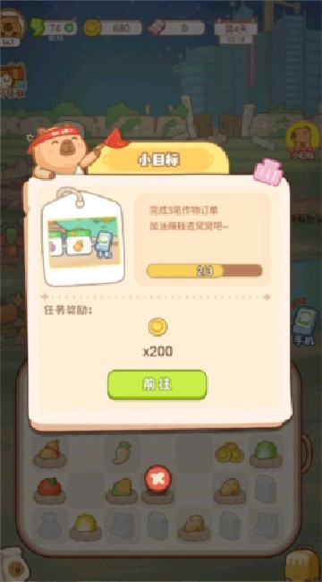 2、完成订单可获得金币奖励,用于购买鱼饵、升级房屋等。