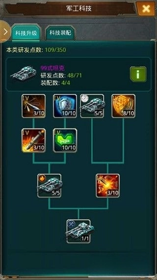 对于高端玩家金币够用,解锁瀑雨火箭军工,然后解锁坦克军工直到解锁出虎王坦克军功,也是跟上述一样,回过头来点豹子防护,生命坚韧。(对于土豪来讲,你也可以火箭金币车军工满,回过头来开坦克军工,攻击穿刺这些都可以,因为有金币一切都不是问题)