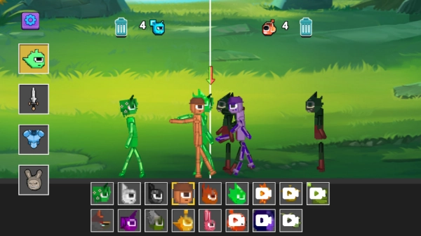 2.玩家能够在左右两边的战场布置各式各样的像素动物角色,借助角色搭配和装备设置打造出具有差异的战力体系。