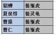 (2)国战:极霸下、极灵龟、极烛龙、极驱虎、极凤凰。