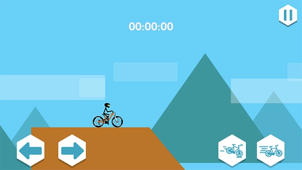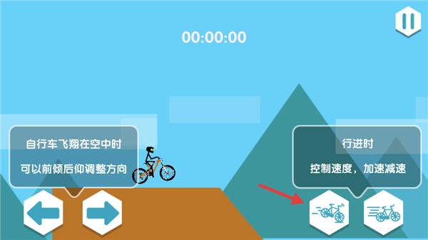 1. 通过屏幕右侧的加速和刹车按钮控制自行车速度,利用左侧的虚拟方向键控制火柴人的前后重心。
