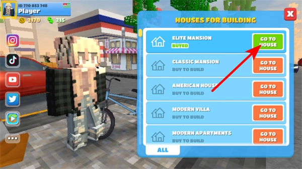 2、进入建筑界面后,挑选已解锁的房屋并点击“GO TO HOUSE”,即可前往对应的建筑区域,开展建设工作或解锁相关功能。