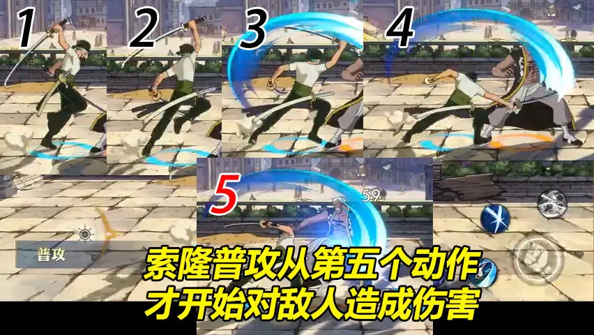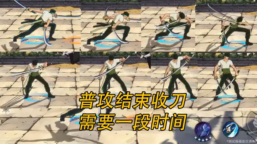 这时,细心的新手玩家就察觉到了,索隆在挥刀的这段时间内,无法对敌方造成伤害,而且在挥刀过程中,索隆无法移动。