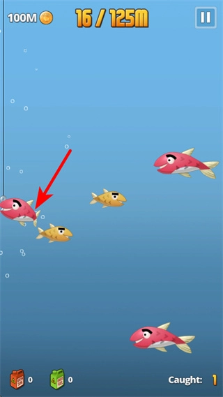 3、垂钓过程中,瞄准水中的鱼类如红色鱼进行捕捉,成功钓到鱼后会累计捕获数量,积累资源操作。