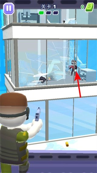 2、随着关卡推进,敌人数量会增加,需依次瞄准不同位置的敌人进行射击,逐步清理当前楼层的目标,推进关卡进度。