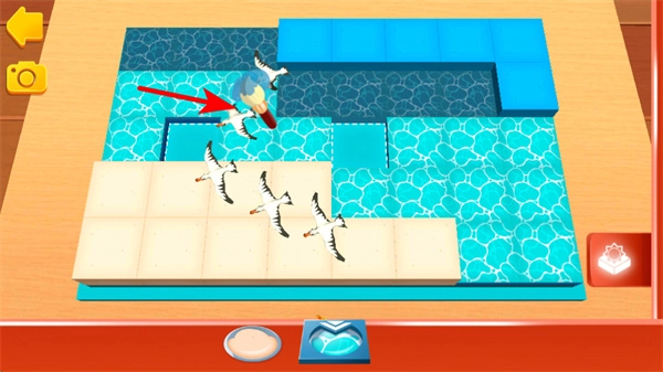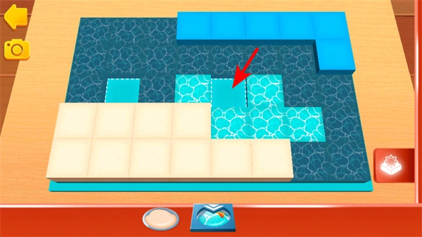 3、切换轨道模块类型如泳池样式,继续在场景中拼接轨道,确保轨道连通目标区域如蓝色方块处,完成搭建。