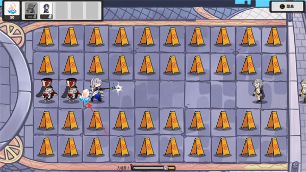 3. 进入游戏场景后,将选中的角色部署至可操作的格子区域,围绕障碍物等场景元素开展对应玩法。