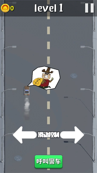 2、在屏幕上左右滑动,以此操控警车移动,巧妙避开障碍物,全力追击小偷的车辆。