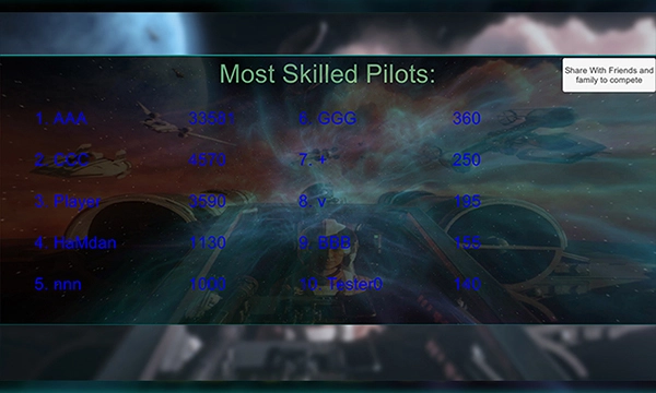 5、游戏结束后会显示10位最顶尖的飞行员,也就是得分排名前10的玩家。想让自己的名字出现在榜单上吗?那就赶紧来挑战吧!