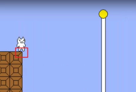 步骤二、走到台阶最边沿后,先别急着跳过旗杆,在原地起跳就能越过游戏里的黄色横条,要是直接起跳的话就会撞上横条。