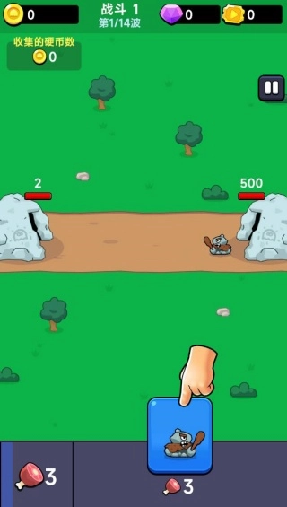 进入游戏后,借助系统自动产出的食物资源,当该资源数量积攒到3个时,就能召唤士兵,建立起基础的作战部队。
