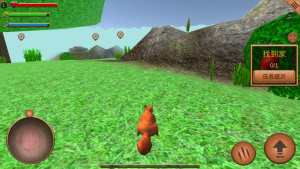 4、借助虚拟摇杆和按键,控制松鼠完成跑、跳、攀爬等基础动作。