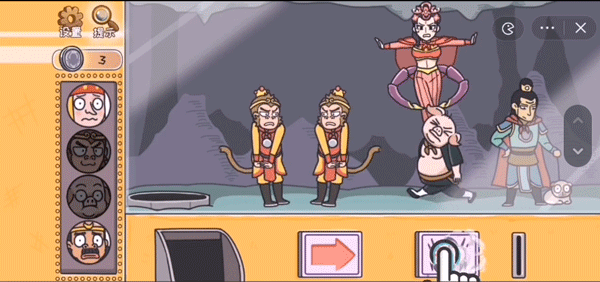 通关方法:点亮二郎神的第三只眼、点击孙悟空的左眼、移开唐僧的帽子、点击金角大王和银角大王的角、移开八戒的耙子露出沙僧。