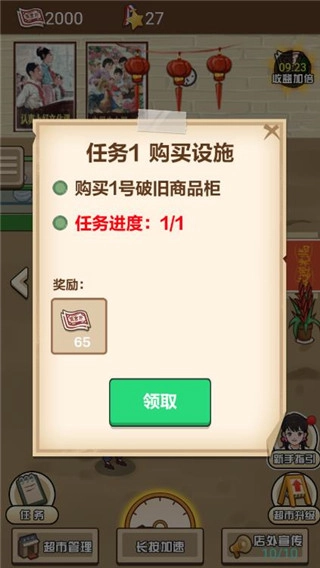 3、次日登录即可领取豪华装饰,助你的便利店提升档次、更显高档。