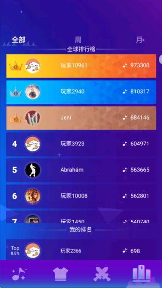 5.另外,游戏里还有排行榜系统,玩家可以和其他很多玩家比拼分数,不断增加自己的积分,争取让排名上升吧!