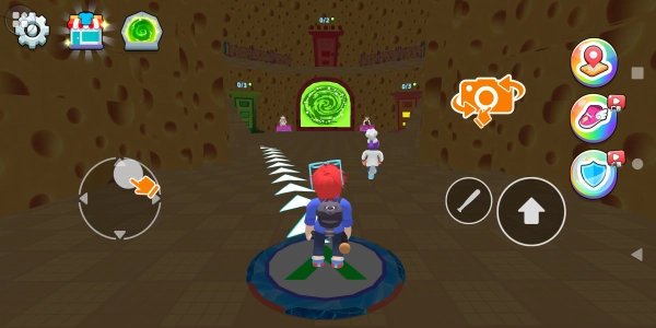 3. 就像下面这张图呈现的那样,我挑选了奶酪地图。进入地图后,通过左边的摇杆来操控移动,右边的按键则分别负责跳跃和发起攻击。
