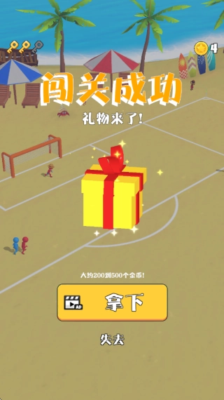 3. 如下图所示,成功把足球踢进球门就能完成当前关卡的任务。