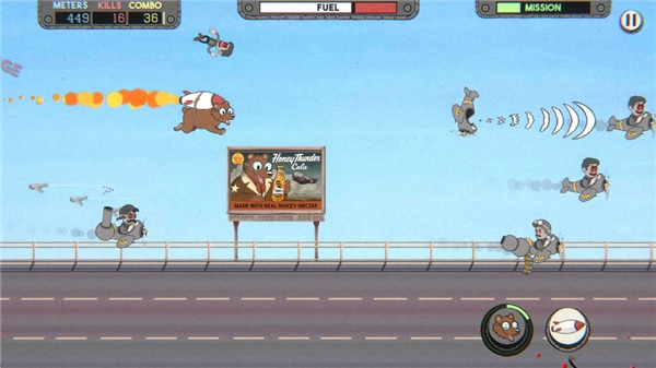 化身喷气动力熊驰骋云端,唤醒你心底的不羁野性。冲撞对手的战机,用喷射火焰把飞行员在空中炙烤,或是发出撼动天地的咆哮,将敌人从驾驶舱里惊得飞出去,任他们的飞机在荒诞的卡通画风里撞作一团!